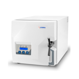 Autoclave Lorma de Acero Inoxidable de 12 Litros, esterilización a vapor, control de ciclos de esterilización por microcontrolador, cámara y charolas en acero inoxidable, lectura de todas las variables en Display LCD, tres programas de esterilización y programa de secado.